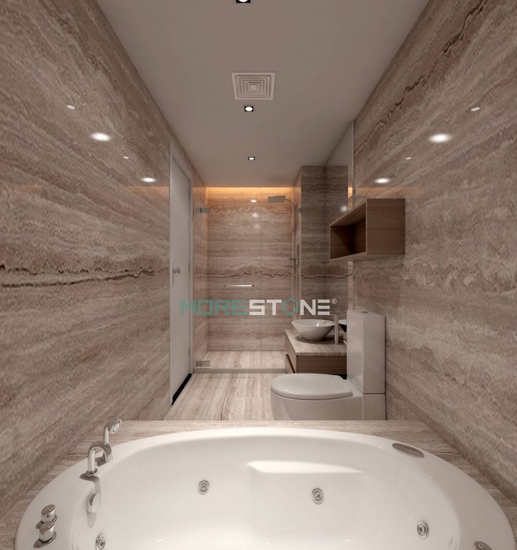 Thiết kế phòng tắm sử dụng đá màu trắng có vân - vẻ đẹp trường tồn với thời gian