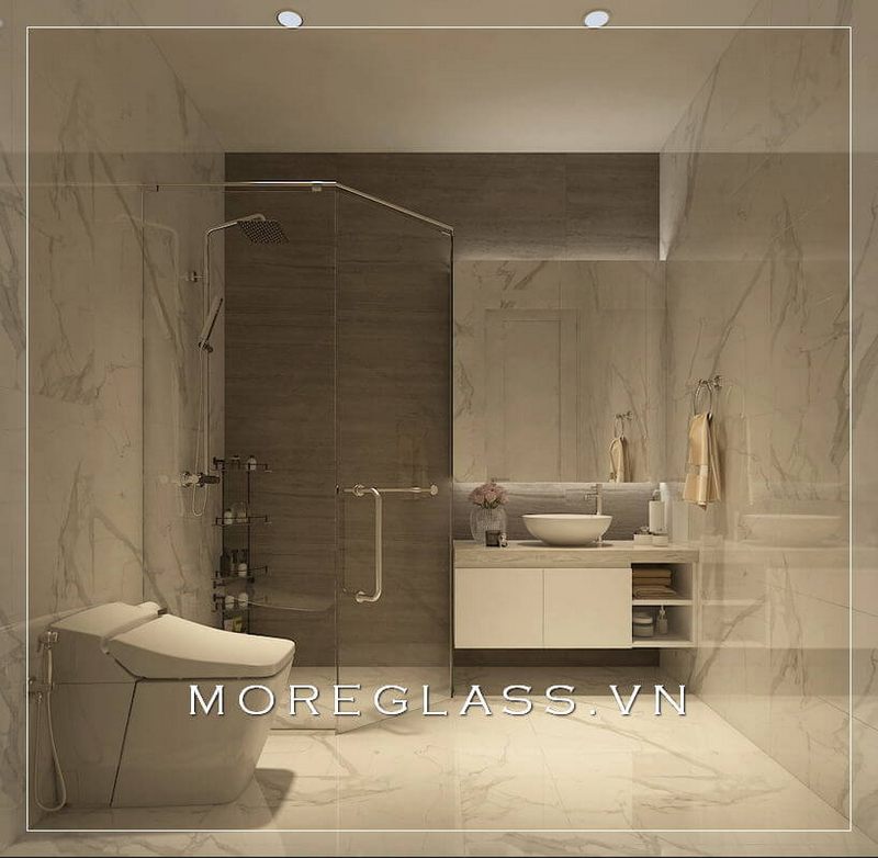 Thi công vách tắm kính 180 độ cho một không gian phòng tắm sạch sẽ, hiện đại mà tinh tế tại Mỗ Lao, Hà Đông