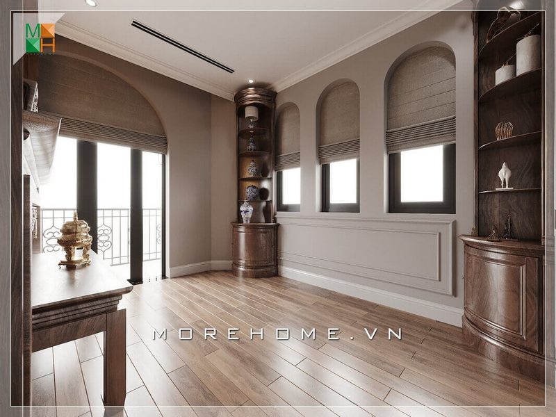 Sắp xếp phòng thờ đẹp với cách bố trí cửa sổ lớn giúp không gian phòng thờ luôn được thông thoáng mà không phạm phong thủy.