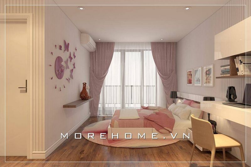 Nội thất phòng ngủ con gái tại chung cư hiện đại, các chi tiết nội thất tối giản mà vẫn đảm bảo đầy đủ sự tiện nghi nhất cho con