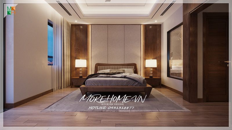 Với mẫu thiết kế phòng ngủ biệt thự, nhà phố hiện đại nội thất được bố trí phù hợp với không gian hài hòa về tổng thể.