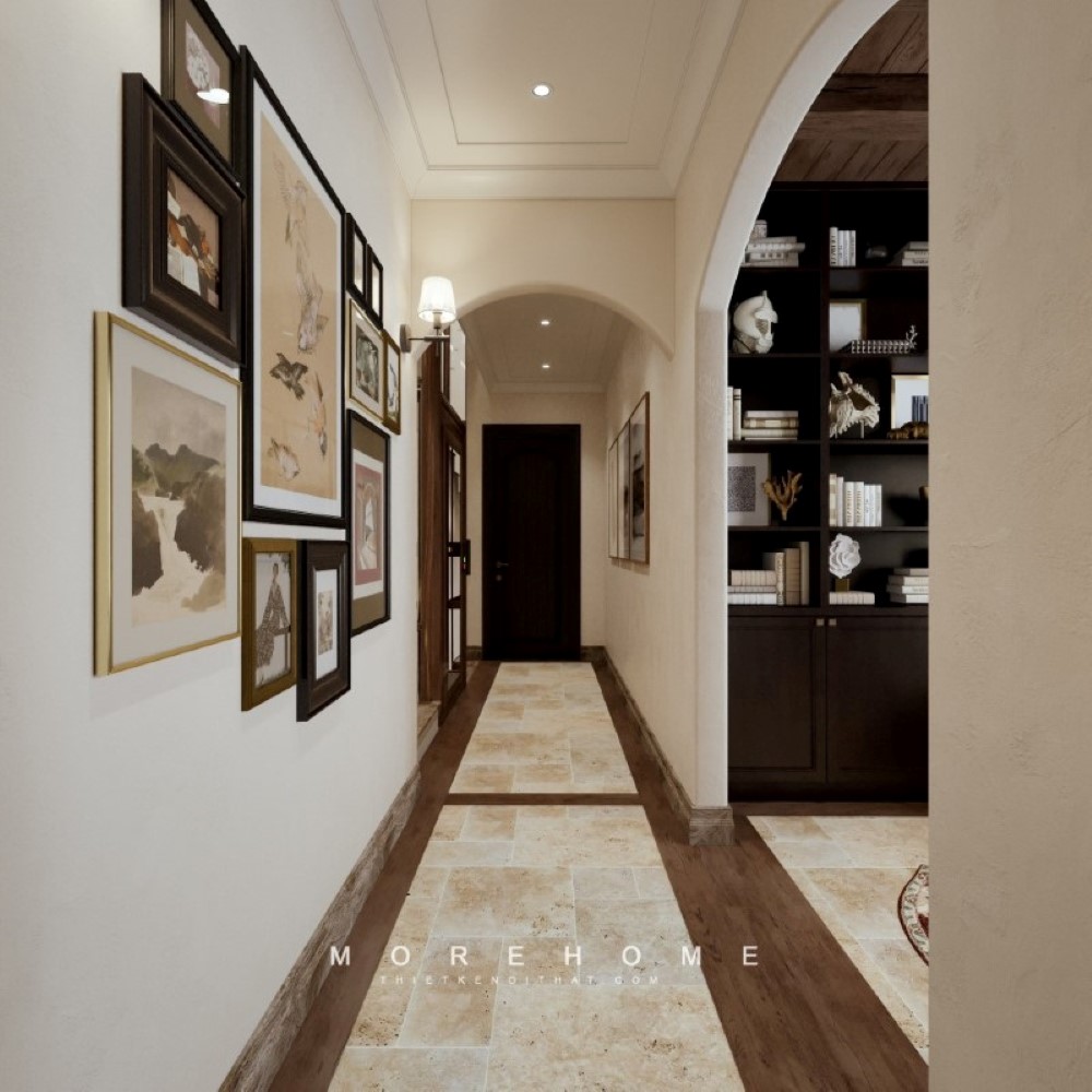 Trang trí hành lang tầng lối đi chung của các không gian phòng với nhau một mạch ngầm đoàn kết, mang ý nghĩa phong thủy riêng cho không gian nhà
