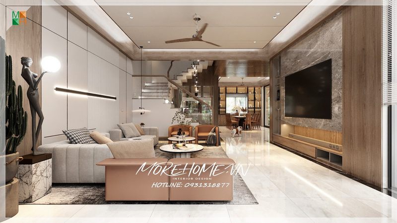 Ghế sofa văng, ghế sofa đơn và đôn sofa được pha trộn độc đáo cùng bàn trà chân kim loại mặt đá nhân tạo cao cấp, tạo nên một không gian phòng khách trẻ trung, hiện đại phù hợp với các căn hộ, nhà phố và biệt thự.