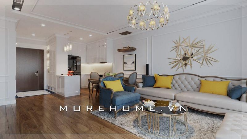 Sofa gỗ óc chó cao cấp có vẻ sang trọng và được thiết kế theo phong cách tân cổ điển với nghệ thuật tinh tế. Vỏ bọc da mềm mại và các nút thắt tỉ mỉ tạo nên sự sang trọng cho không gian phòng khách chung cư.
