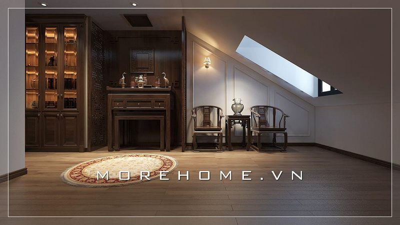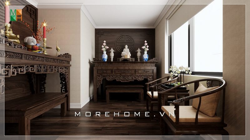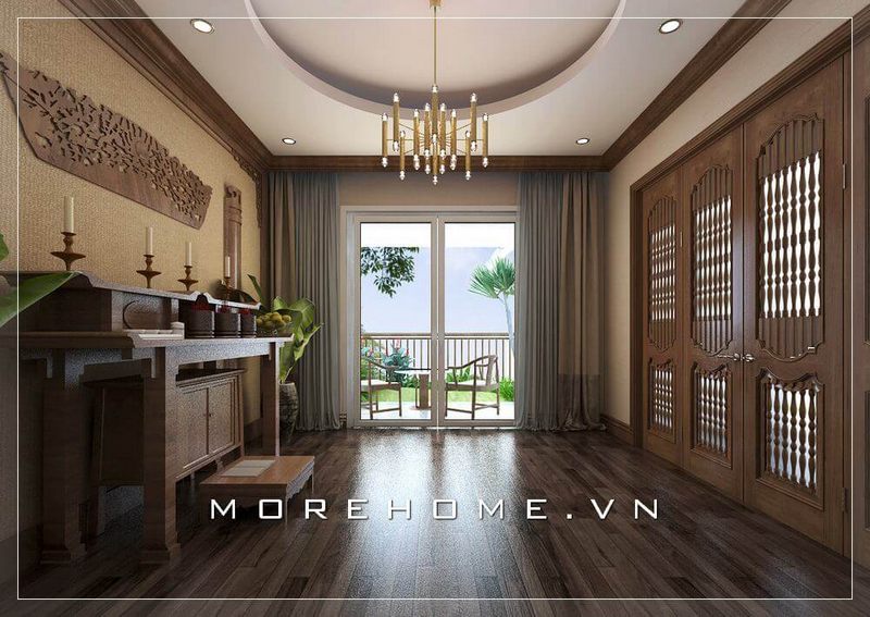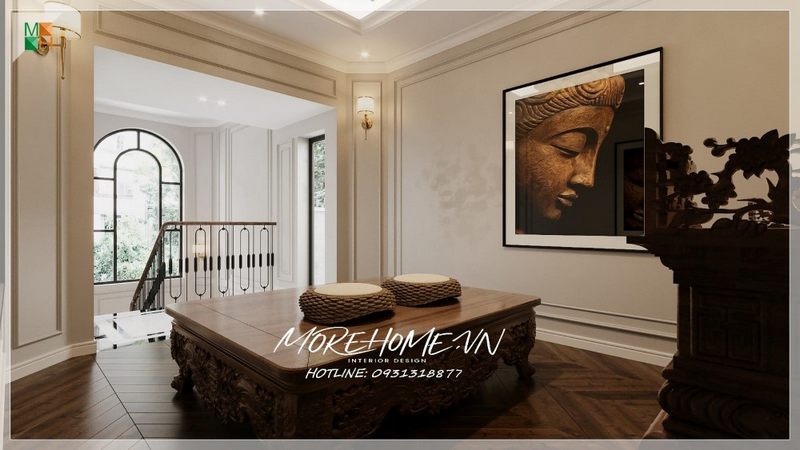 KTS MoreHome đã tạo ra một mẫu thiết kế nội thất phòng thờ biệt thự để người ta có thể chiêm ngưỡng.